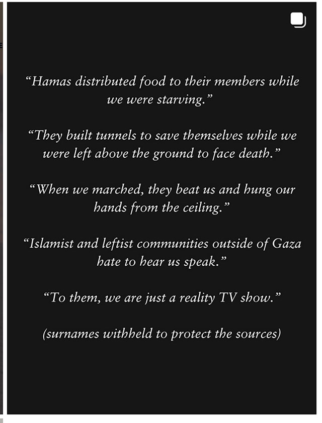 Howidy continues to lament the Arab public’s lack of interest in the political situation in Gaza. Like many people in Gaza, he criticized Al Jazeera’s coverage, which in the beginning ignored the recent protests in Gaza in the summer of 2025 against Hamas rule and soon reinterpreted them as protests against Israel because they clearly did not fit its own political agenda. “Suddenly, Al Jazeera stopped reporting on Gaza. (And now they’re silencing us by putting words in our mouths). Al Jazeera and other ‘pro-Palestine’ media networks are betraying the Palestinians and protecting the regime oppressing them”, he wrote on his Instagram account. Howidy then took on the job that Arab media outlets did not want to do. He gave a voice to people from Gaza who expressed their frustration with Hamas rule, but also with the international protests against the Gaza war: “Hamas distributed food to their members while we were starving.” – “They built tunnels to save themselves while we were left above the ground to face death.” – “Islamist and leftist communities outside of Gaza hate to hear us speak.” – “To them, we are just a reality show.”